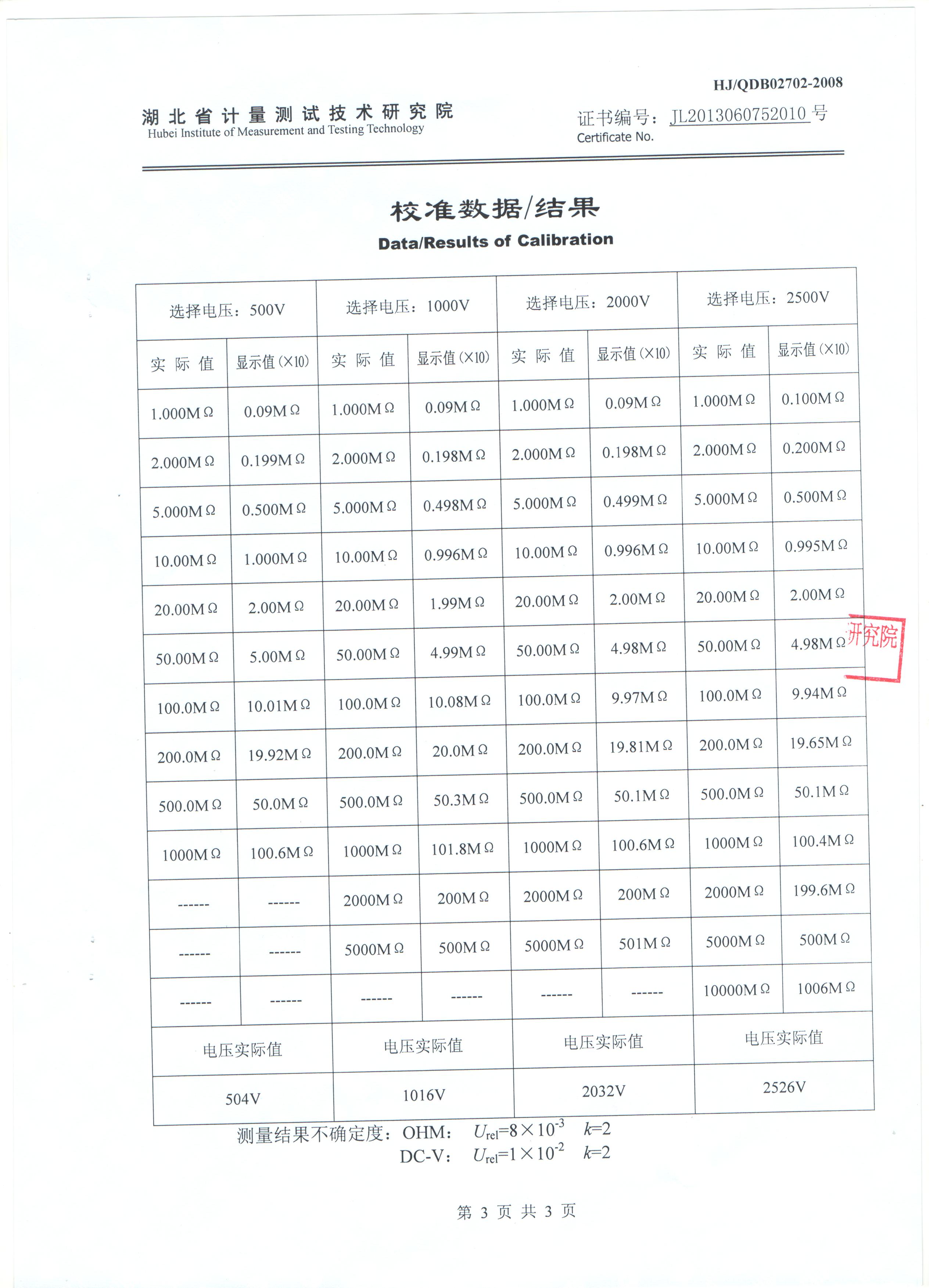 TLHG-2671數(shù)字式兆歐表鑒定證書